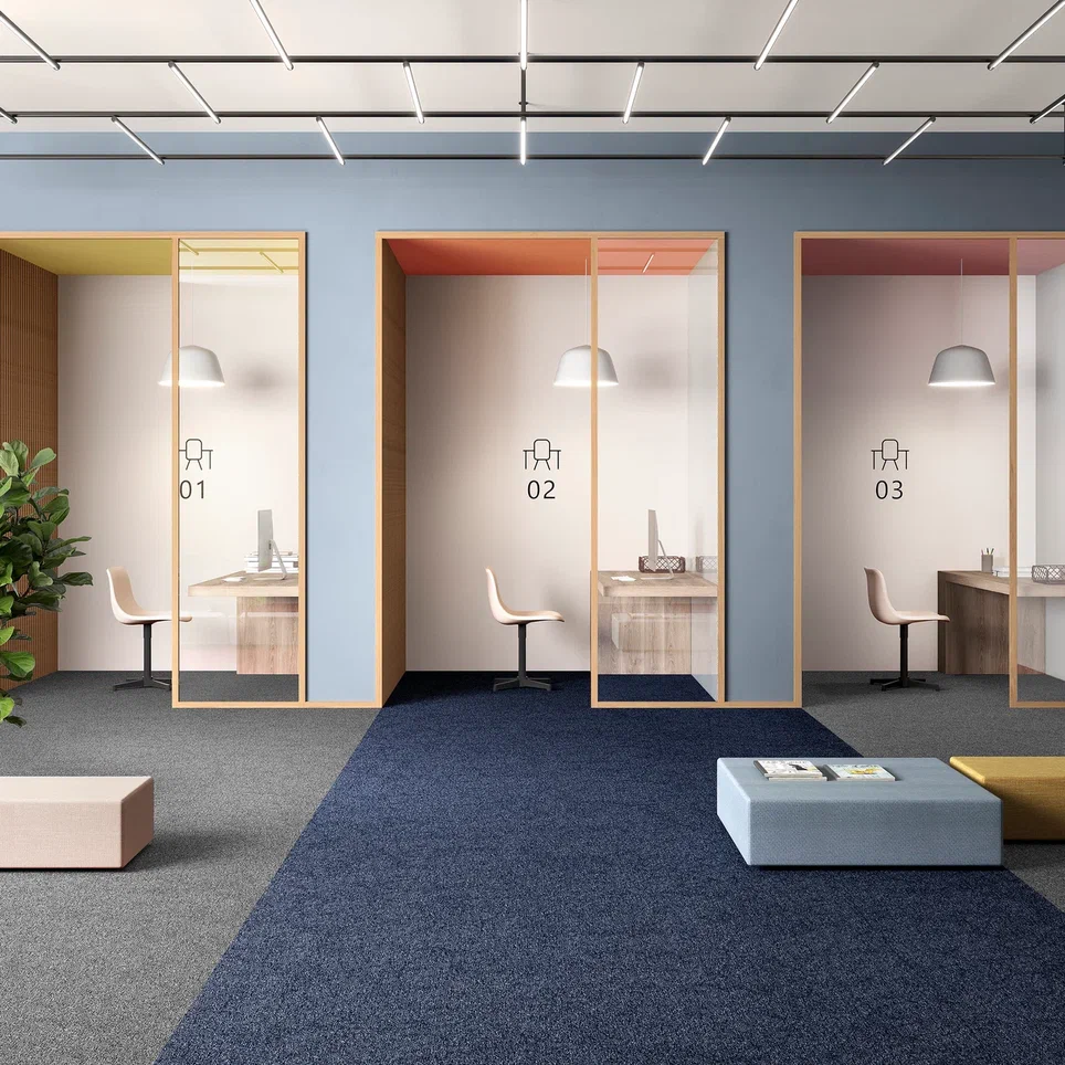 Модульное напольное покрытие для коммерческих помещений с высокой проходимостью. Устойчива к воздействию ножек мебели и колесиков кресел в течение длительного времени.
